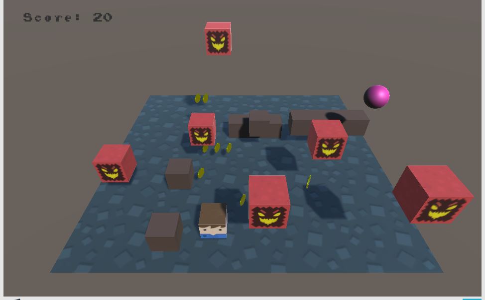 The aim of the game is to collect the coins and go to the purple ball to complete the level, whilst avoiding the purple monsters.